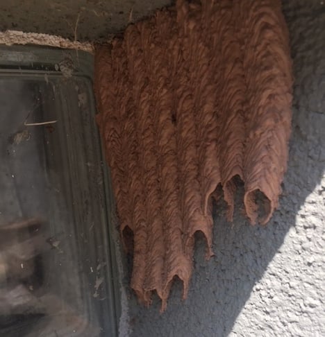 Mud wasps are also referred to as mud daubers. This type of wasp is easily the least aggressive. A single adult mud dauber will live within a nest unlike hornets and yellow jackets that create large colonies. You can tell that you have mud daubers by identifying their nest. These unique nests look like conjoined tubes with a mud color. The nests are usually created in a protected area such as under eaves on the outside of your home and within sheds.
