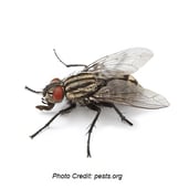 Cluster flies are very similar in appearance to house flies. They are about 0.31 - 0.39 inches long and gray, covered with visible yellow, bristle-like hairs. These slow flyers literally "cluster" together, sometimes in the thousands when they flock towards warmth. They fly into homes and commercial buildings between late August and early September when they are seeking a source of heat for the winter season. People usually notice cluster flies inside of buildings when they show up dead, in large quantities seemingly overnight. You can also find cluster flies clinging to the outside of buildings, typically on the third story and higher on the side of the building that gets the most direct sun.