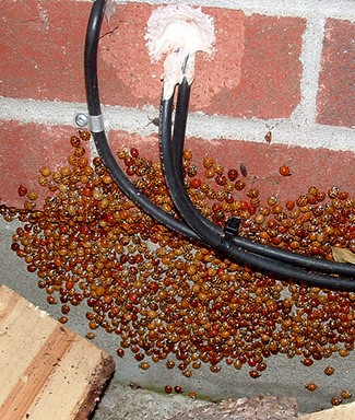 Ladybugs enter homes in the late fall as they are searching for a place to stay warm during the impending cold weather months. They belong to a category called “overwintering pests” which is very suiting to their predictable pattern of activity. An overwintering pest is most literally a pest that stays indoors over the winter. Other overwintering pests include stink bugs, boxelder bugs, and cluster flies. Ladybugs find tiny cracks and crevices around your home where they can squeeze their 0.3 inch bodies through. Microscopic and overlooked entry points are easy access points for ladybugs. Once they determine that your house is suitable, they release pheromones that attract other ladybugs to follow. It's not always the case that if you have ladybugs overwintering in your home, your neighbors do too. Unlike other pests that are native invaders, ladybugs often choose a single home and return there year after year. There is not much you can do to predict where they will go.